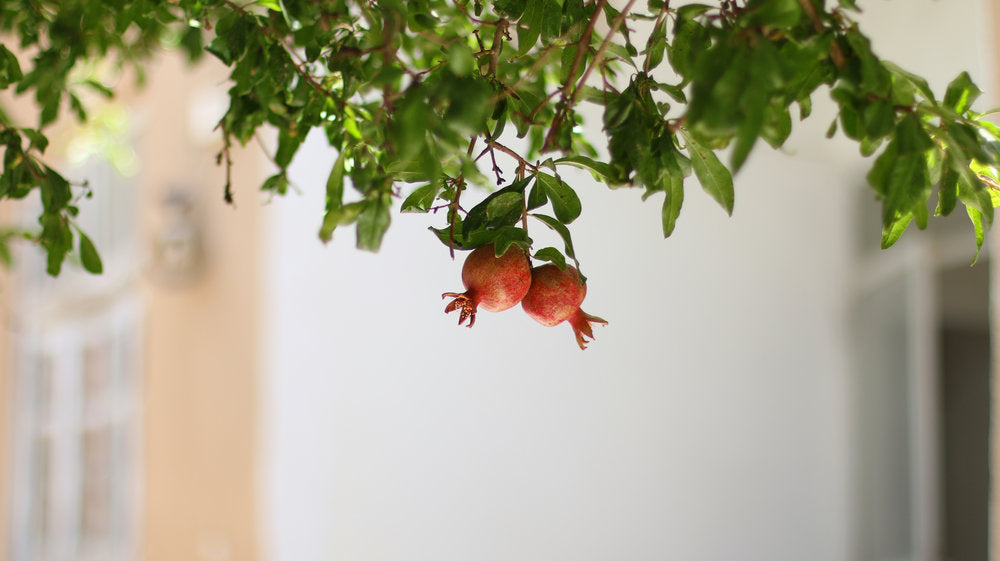 CRUSHED PEA AND POMEGRANATE SALAD WITH HALLOUMI, FREEKEH, ALMONDS AND HARISSA YOGURT